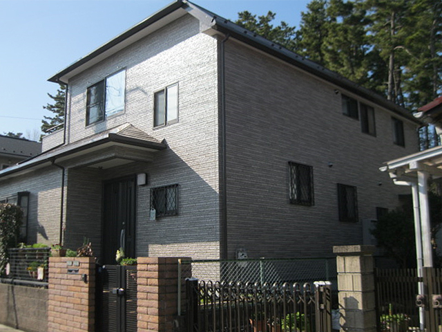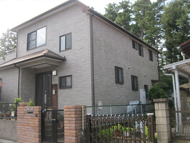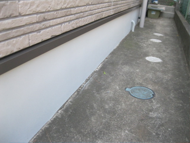 外装塗装事例:W邸。オーナー様と合議して、塗料材や色を決定し、施行しました。外壁基礎部分も施工しています。