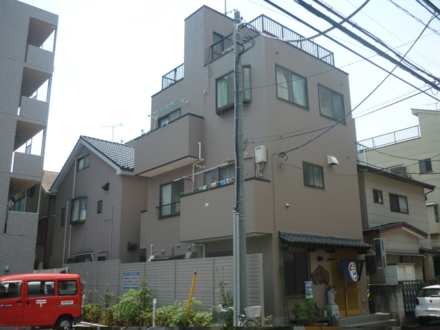 塗装事例:T市M邸。オーナー様と合議して、塗料材や色を決定し、施行しました。足場組立の際の様子も掲載しています。