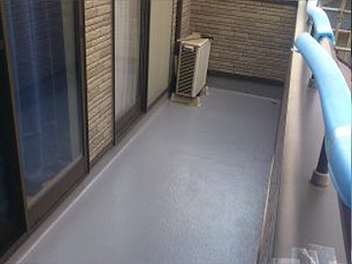 | FRP防水 | 液状の不飽和ポリエステル樹脂に硬化剤を加えて混合し、この混合物をガラス繊維などの補強材と組み合わせて一体にした塗膜防水工法です。出来上がった防水層は継ぎ目のないシームレスな構造となります。 FRP防水は、木造住宅バルコニーや洗濯干し場などの防水として多く採用されています。 |